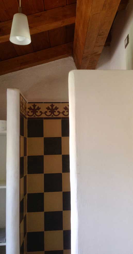 Het huisje is comfortabel en licht, er is een ruime woonkeuken (voorzien van alle modern comfort) met een eettafel en en twee comfortabele leunstoelen. De vloer is bekleed met antieke terracotta-tegels. Een gemakkelijke trap leidt naar de eerste verdieping. Boven biedt de slaapkamer een heerlijk bed en een prachtig uitzicht over de omringende heuvels en de Apuaanse Alpen. Op de eerste verdieping bevindt zich ook de badkamer met douche. Het huisje is smaakvol ingericht.