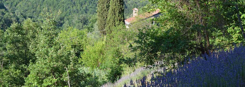 The house sits on a hill surrounded by olive groves and offers stunning views over the surrounding wooded hills, the majestic Apuan Alps and the historic village of Codiponte, surmounted by the ruins of a 13th-century castle and Clarisse monastery.